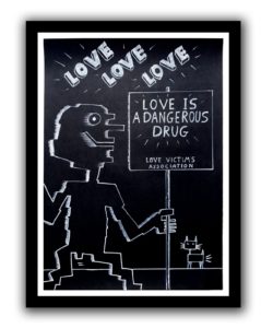 This amazing acrylic pen on black paper describes that love is a dangerous drug.]]>